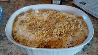 Cover with the cheese and top everything with the crushed croutons. I've never used these before and I found these really add a whole nother layer of flavor to this dish.